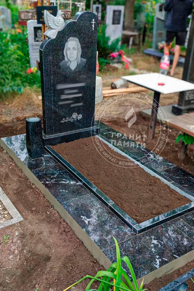 На черном граните портрет рисуется непосредственно на камне, а на мраморе и цветном граните портрет не гравируется, не будет видно черты лица. Нужно будет делать вставку или черной гранитной плитки или фотокерамики.