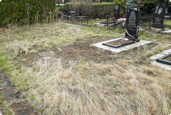 Покос травы Покос травы — одна из необходимых процедур для благоустройства. Важный этап в уходе и поддержании места захоронения в порядке.