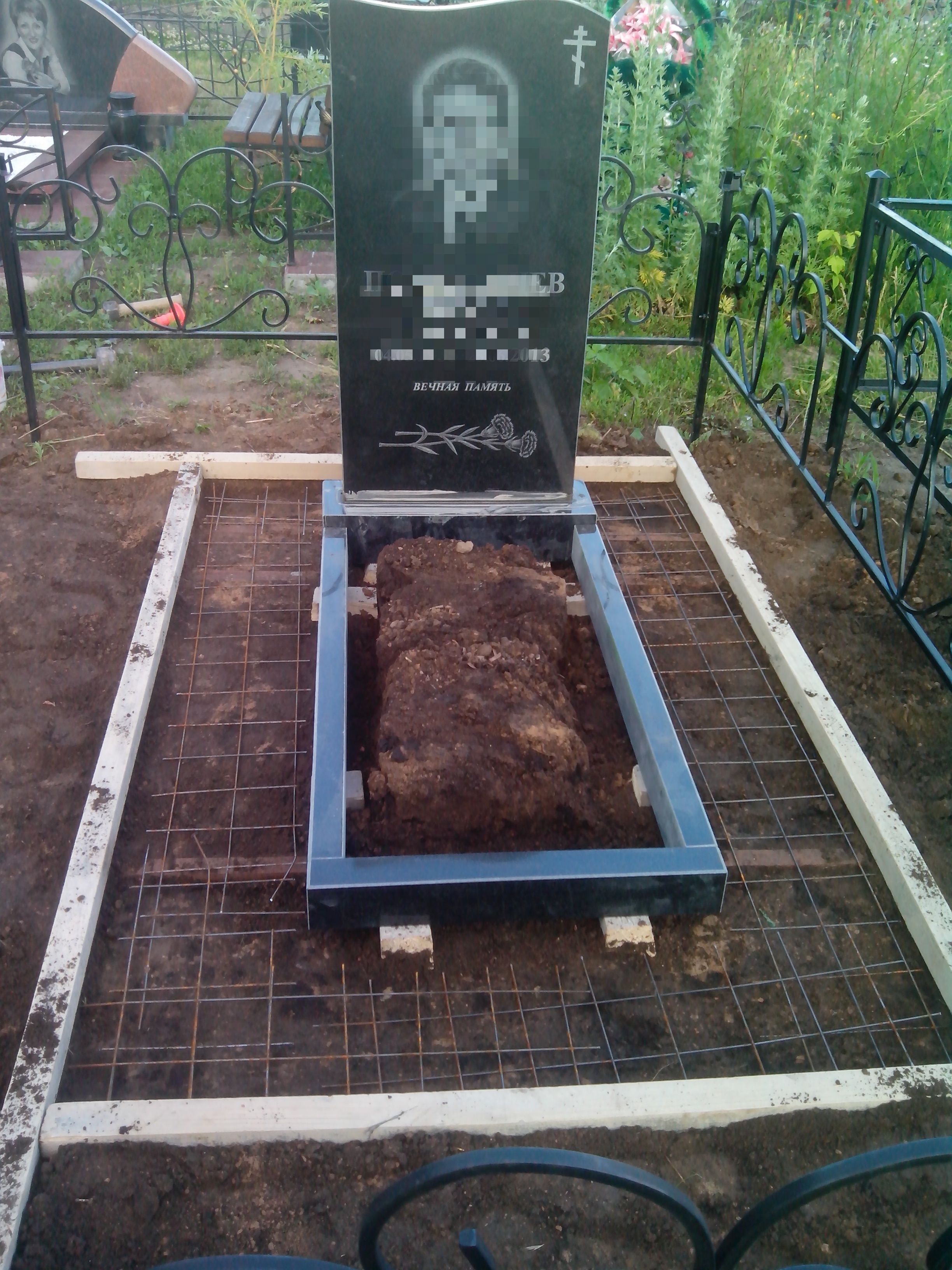 Планировка участка — с использованием грунта, снятого с могилы;